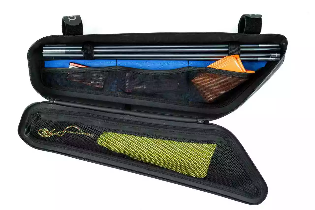 - Die gesamte Pack Pro BikePacking-Serie wurde mit erfahrenen BikePackern entwickelt. Die Pro 3 ist die mittelgroße Rahmentasche dieser Serie. Die verschweißte, PVC-freie Konstruktion ist wasserdicht, das Außenmaterial robust und pflegeleicht. Dank umlaufendem Molle-System lässt sich die Tasche an verschiedensten Rahmentypen befestigen. Seitliche Reißverschlussfächer mit glatt laufenden Zippern bieten Platz für Kleinigkeiten. Auch die Innenaufteilung ist gut durchdacht: Werkzeug und Ersatzteile lassen sich in mehreren Innenfächern übersichtlich verstauen und durch farblich abgesetzte Fächer leicht wiederfinden. Reflektierende Elemente erhöhen die Sichtbarkeit im Straßenverkehr.