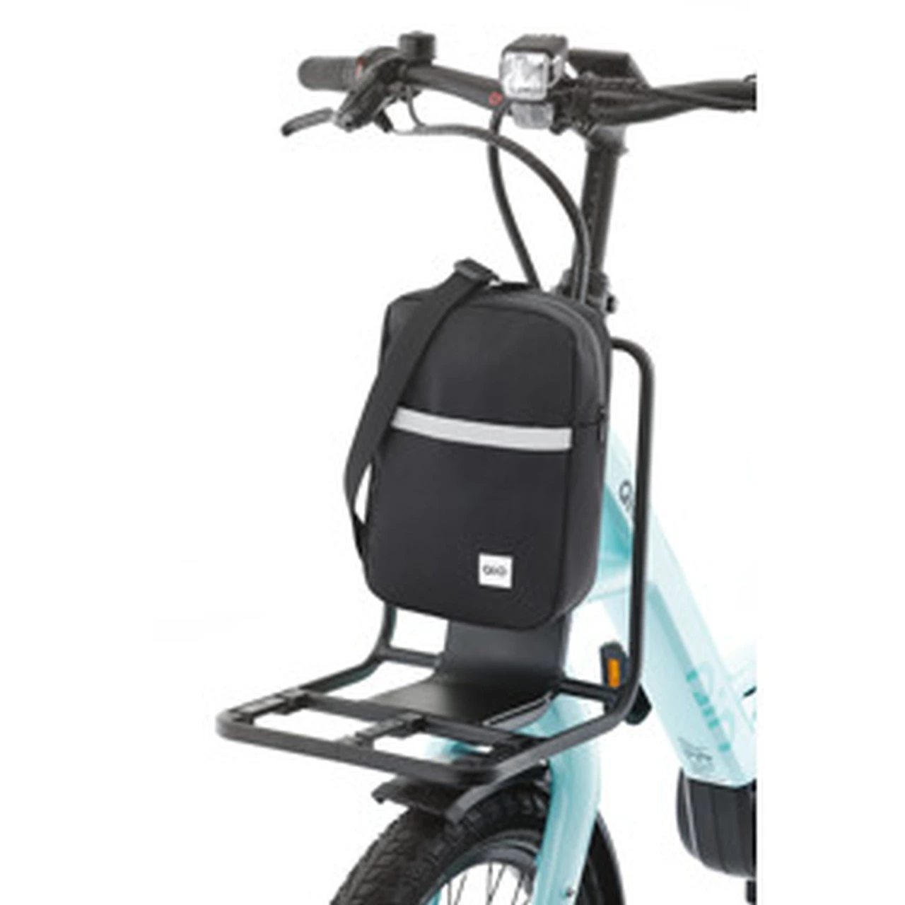- Lässt sich mit einem Handgriff auf einem qio Frontgepäckträger befestigen
