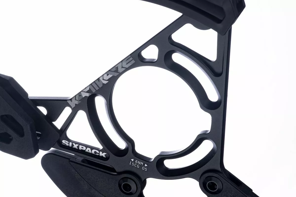 - Sixpack Kamikaze Kettenführung Robuste DH-Kettenführung mit integriertem Taco aus strapazierfähigem Schweizer Polycarbonat. Führungsrolle mit Industrielager. CNC 6061-T6 Aluminium ISCG05 Backplate. Wird mit Kettenlinien-Spacern und ISCG-Schrauben geliefert.
